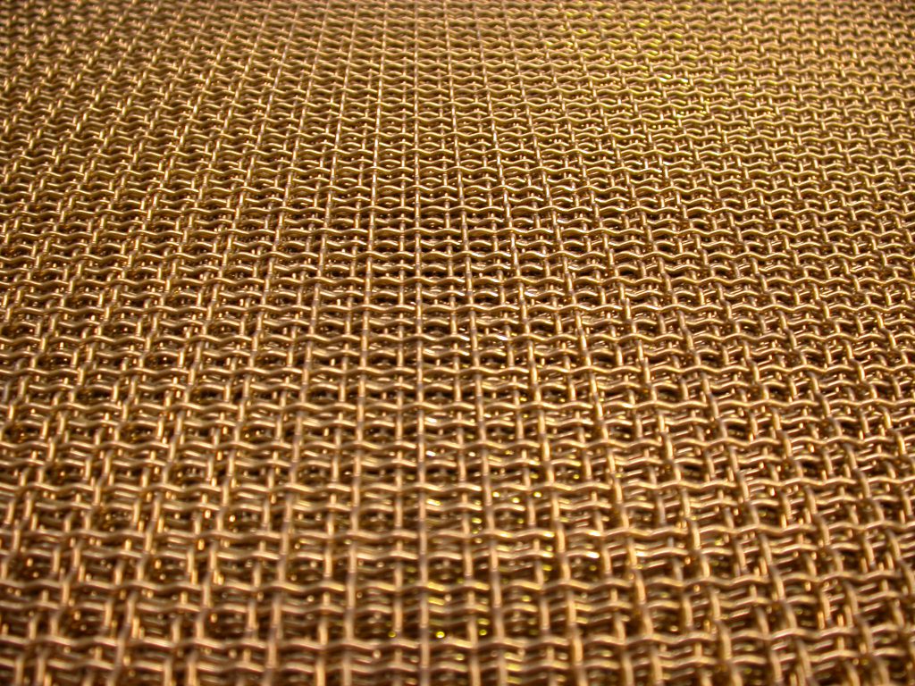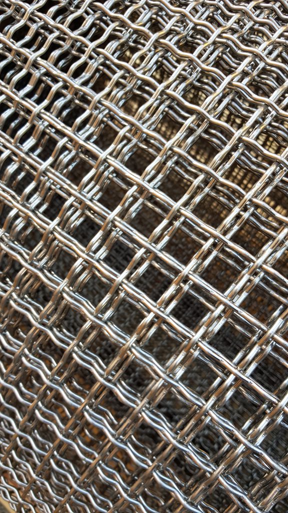 Woven mesh is manufactured by weaving longitudinal and transverse wires together and can run from coarse fabrics to exceptionally fine fabrics and all points in between. Woven mesh is normally specified by “mesh count” – this number represents the number of apertures in an inch of travel in one direction of the fabric. So “10 mesh” for instance will have 10 holes per inch of travel in the fabric or 100 holes per square inch. Woven mesh is manufactured without welding so the woven fabric tends to be flexible and able to be manipulated readily for curves for use in architectural applications and the like.